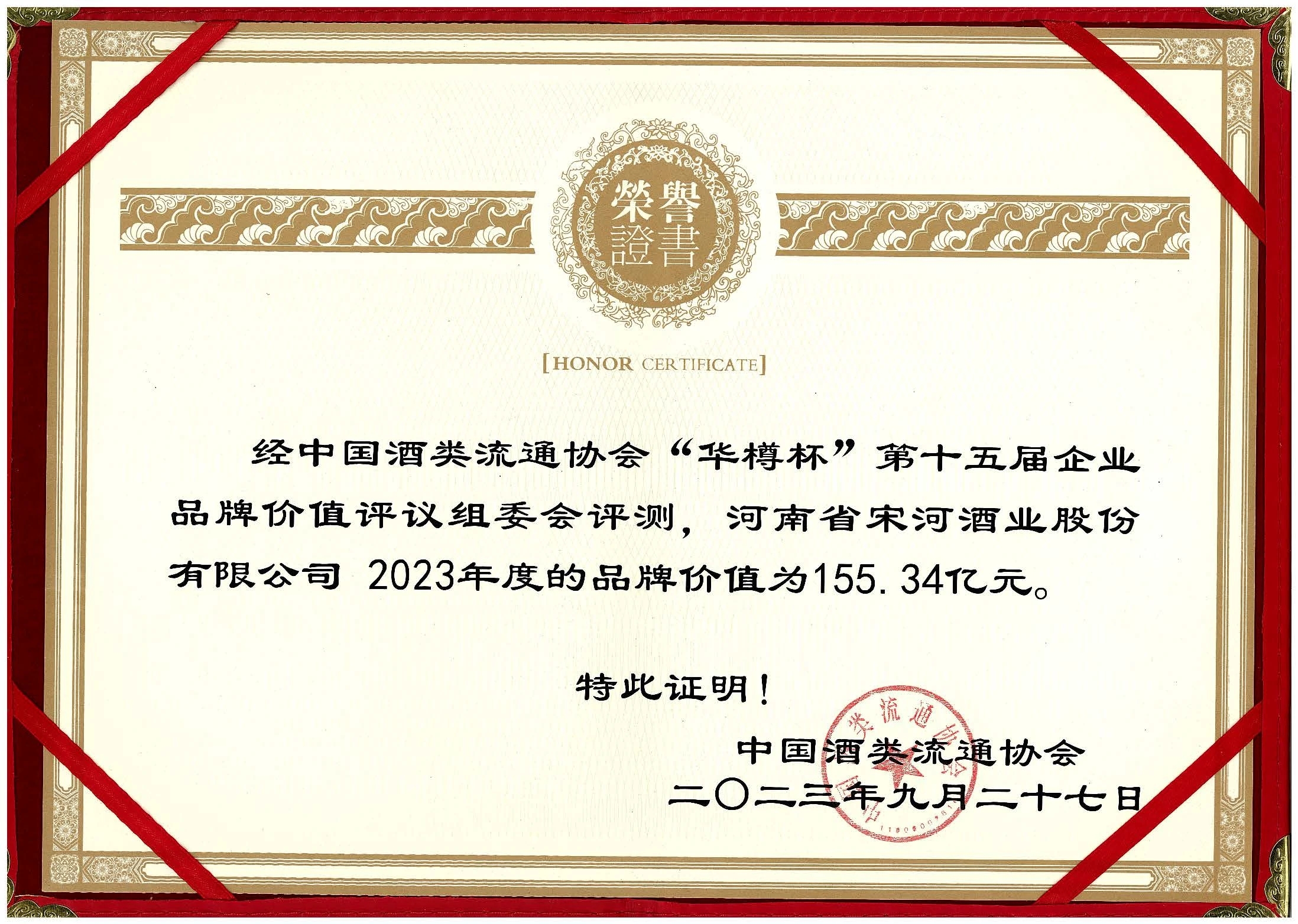 宋河酒業(yè):2023年度品牌價值為155.34億元