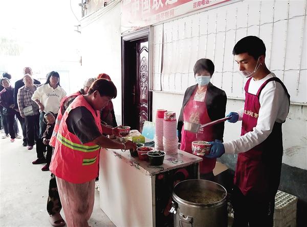 • 10月10日,重陽節(jié)前夕,清晨第一縷陽光灑向大地,錢廣新已經忙碌起來,在他和廚師的精心準備下,一鍋鍋熱氣騰騰、香氣四溢的綠豆面條端了出來。錢廣新一邊熱情地招呼老人排隊,一邊動手盛飯,微笑掛在嘴角,快樂寫在臉上。