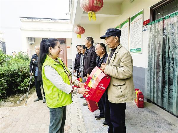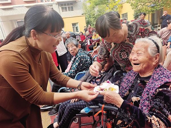 • 10月10日上午,周口市文昌幼兒園黨支部30余名黨員志愿者來到川匯區(qū)城南街道綜合養(yǎng)老中心,開展“愛滿金秋 情暖重陽”志愿服務活動。志愿者向老人送去慰問品,并表達對老年人的美好祝福。