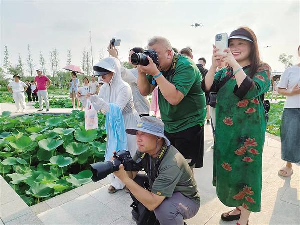 7月8日,淮陽(yáng)龍湖國(guó)家濕地公園內(nèi)荷花盛開(kāi),吸引游客駐足欣賞。盛夏七月,正是賞荷花的好時(shí)節(jié)。據(jù)了解,第三屆周口荷花節(jié)7月9日在淮陽(yáng)龍湖畔的羲皇文化廣場(chǎng)開(kāi)幕。