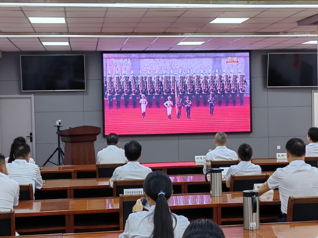 收看過(guò)程中,大家心情澎湃,感慨萬(wàn)千?,F(xiàn)場(chǎng)氣氛莊重而熱烈,大家全神貫注,聆聽(tīng)習(xí)近平總書記重要講話,滿懷激動(dòng)與自豪的觀看閱兵儀式的全過(guò)程。當(dāng)威武雄壯的三軍儀仗隊(duì)邁著鏗鏘有力的步伐率先通過(guò)天安門廣場(chǎng)時(shí),當(dāng)一個(gè)個(gè)裝備方隊(duì)展示著彰顯國(guó)家實(shí)力的現(xiàn)代化尖端武器時(shí),當(dāng)戰(zhàn)機(jī)梯隊(duì)以恢宏陣勢(shì)呼嘯掠過(guò)蒼穹時(shí),大家內(nèi)心迸發(fā)出由衷的贊嘆,為祖國(guó)日益強(qiáng)盛而自豪。