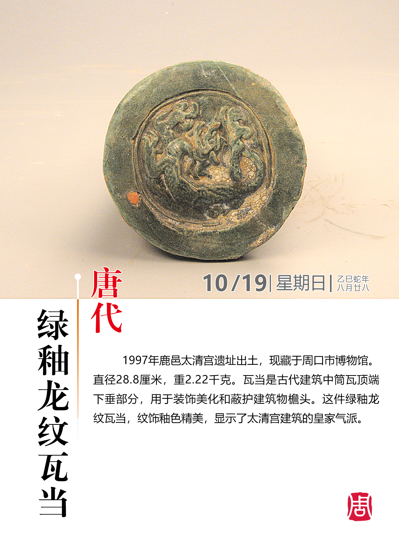 【海報(bào)圖】探尋歷史文化名城——唐代綠釉龍紋瓦當(dāng)