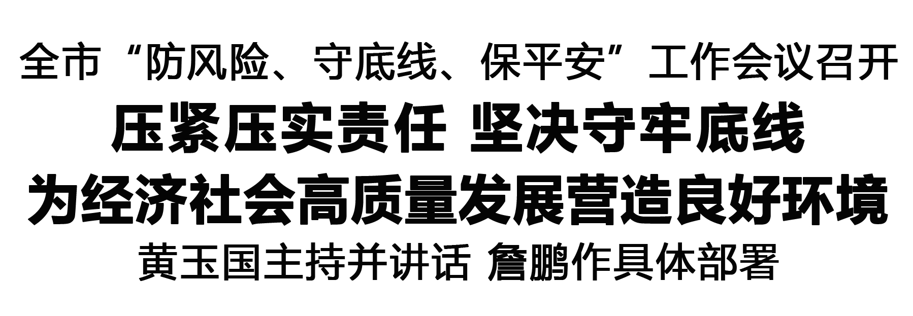 本報(bào)訊 (記者 王艷) 2025年12月31日,全市“防風(fēng)險(xiǎn)、守底線、保平安”工作會(huì)議召開,專題研究部署歲末年初重點(diǎn)領(lǐng)域安全穩(wěn)定工作,釋放從開頭抓緊抓實(shí)、保持高壓態(tài)勢(shì)的鮮明信號(hào),推動(dòng)全市廣大黨員干部思想上高度重視、行動(dòng)上高度自覺,有效防范化解各類風(fēng)險(xiǎn),牢牢守住底線紅線,為全市經(jīng)濟(jì)社會(huì)高質(zhì)量發(fā)展?fàn)I造良好環(huán)境。市委書記黃玉國(guó)主持會(huì)議并講話。市長(zhǎng)詹鵬作具體部署。