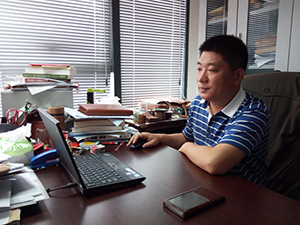 經(jīng)過近1個小時的車程,記者一行來到北京市大興區(qū),在一座寫字樓里,見到了一位中等身材、穿著樸素、精明干練的中年人。他就是我們此行的采訪對象——來自項城市孫店鎮(zhèn)龔堂村的"防水人"龔富強(qiáng)。