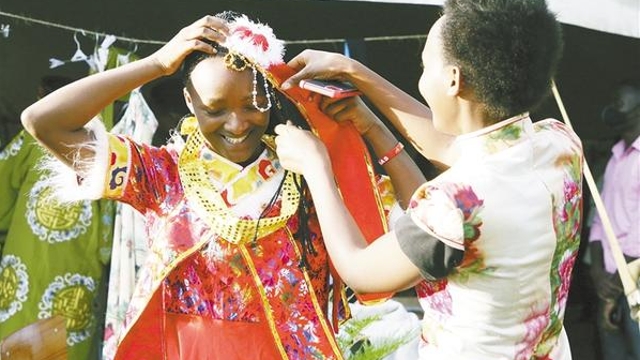11月10日,學(xué)生在盧旺達(dá)卡永扎試穿中國(guó)服飾?!?a href="http://www.fjxykj.com/content/2021-11/13/content_959142.html" target="_blank" >[詳細(xì)]