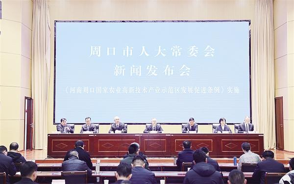 2月28日,周口市人大常委會召開新聞發(fā)布會。市人大常委會、市司法局、河南周口國家農(nóng)高區(qū)管委會及農(nóng)高區(qū)核心區(qū)鄲城縣政府、縣人大常委會等多部門負(fù)責(zé)人表示,將合力把《河南周口國家農(nóng)業(yè)高新技術(shù)產(chǎn)業(yè)示范區(qū)發(fā)展促進(jìn)條例》(以下簡稱《條例》)學(xué)習(xí)好、宣傳好、落實好,為河南周口國家農(nóng)高區(qū)高質(zhì)量發(fā)展提供堅實有力的法治保障,為率先建成農(nóng)業(yè)強(qiáng)市、推進(jìn)鄉(xiāng)村全面振興作出新的更大的貢獻(xiàn)。[詳細(xì)]
