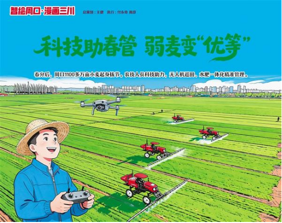 春分后,周口1100多萬畝小麥進(jìn)入起身拔節(jié)期,農(nóng)技人員依托科技開展精準(zhǔn)春管。