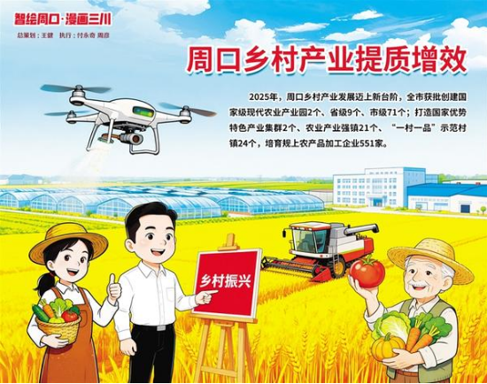 2025年,周口鄉(xiāng)村產(chǎn)業(yè)發(fā)展邁上新臺階,全市獲批創(chuàng)建國家級現(xiàn)代農(nóng)業(yè)產(chǎn)業(yè)園2個、省級9個、市級71個,形成“國家級引領(lǐng)、省級支撐、市縣級補充”的梯次發(fā)展格局。打造國家優(yōu)勢特色產(chǎn)業(yè)集群2個、農(nóng)業(yè)產(chǎn)業(yè)強鎮(zhèn)21個、“一村一品”示范村鎮(zhèn)24個,培育規(guī)上農(nóng)產(chǎn)品加工企業(yè)551家,形成以益海糧油、金丹乳酸、雪榮面粉為龍頭的糧食加工產(chǎn)業(yè)集群。