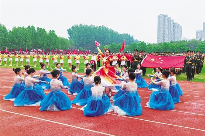 4月16日,周口職業(yè)技術(shù)學(xué)院學(xué)生帶來精彩表演。春風(fēng)和煦,我市各高校春季運(yùn)動會陸續(xù)拉開帷幕。在周口職業(yè)技術(shù)學(xué)院春季田徑運(yùn)動會開幕式上,師生們的文體表演、趣味運(yùn)動贏得觀眾陣陣掌聲。