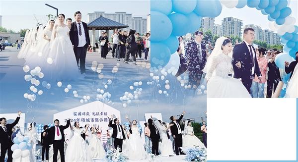 為慶祝新中國成立75周年,大力推進(jìn)移風(fēng)易俗,倡導(dǎo)新型婚育文化,9月24日,以“家國同慶、見證幸?!睘橹黝}的2024年項城市集體婚禮在該市吉祥湖公園舉行。當(dāng)天,來自不同行業(yè)、不同崗位的12對新人喜結(jié)連理,用實際行動爭做文明新風(fēng)的倡導(dǎo)者、踐行者、推動者。圖為集體婚禮現(xiàn)場。 ...[詳細(xì)]