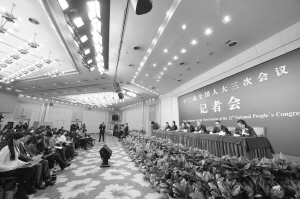 據(jù)新華社北京3月10日電  十二屆全國人大三次會議新聞中心10日下午邀請柳斌杰等5名全國人大專門委員會負責(zé)人集體“亮相”梅地亞中心,接受中外記者提問。