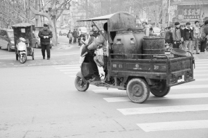 圖③  在八一大道與七一路交叉口,一輛三輪車無視紅綠燈橫沖直闖。