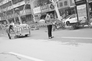 圖①  中心城區(qū)每個(gè)路口都存在不同程度的攔車散發(fā)傳單現(xiàn)象,既不文明又不安全。