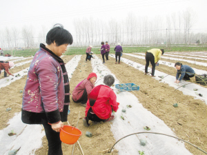 周營鄉(xiāng)積極調整種植結構,因地制宜發(fā)展高效農業(yè)種植,引導群眾搞小弓棚西瓜種植,畝均收入6000余元。4月2日,該鄉(xiāng)王寨村農民正移栽西瓜苗。