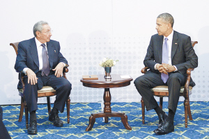 去年12月,美古兩國宣布啟動關系正?;M程。本屆峰會期間,奧巴馬與古巴領導人勞爾·卡斯特羅舉行了兩國斷交半個世紀以來的首次會晤,被認為是近期兩國通過談判推進關系正?;囊淮瓮黄啤?/P>