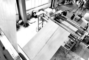 淮陽縣銀豐塑料有限公司流水生產(chǎn)線一瞥。該公司擁有大中型吹塑膜機(jī)組40多臺、制袋生產(chǎn)線6條,并擁有完備的塑料制品化驗(yàn)檢測設(shè)備。生產(chǎn)的農(nóng)用塑料膜等產(chǎn)品暢銷蘇、魯、豫、皖等地,遠(yuǎn)銷美國、韓國等國家。(記者 沈湛 攝)