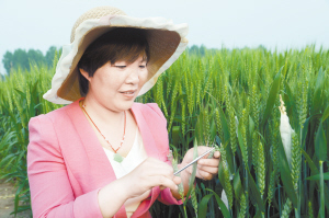 下圖:昨日,項城市農科所技術人員正在進行小麥雜交授粉。連日來,該所抓住小麥授粉期的晴好天氣,組織技術人員開展雜交授粉實驗,確保小麥單產同步提高。(蔣樹保 攝)