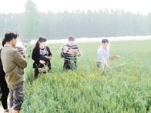 左圖:當前正是小麥后期管理的關鍵時期。昨日,川匯區(qū)農林局“黨員農業(yè)技術服務隊”深入田間地頭,向農民支招小麥后期管理技術。