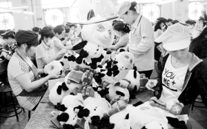廣西各地就業(yè)呈現(xiàn)“鳳還巢”      廣西靈山縣婦女在生產(chǎn)外銷歐美的兒童玩具(4月29日攝)。近年來,廣西各地婦女就業(yè)呈現(xiàn)“鳳還巢”局面,不少在廣東、福建、浙江等地打工的人員,利用所學(xué)技能回鄉(xiāng)創(chuàng)業(yè)。抓住這一契機(jī),廣西投入十幾億元建設(shè)200多個(gè)“巾幗科技示范基地”,為廣大婦女創(chuàng)業(yè)、就業(yè)搭建平臺(tái)。新華社發(fā)