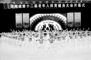 省十二屆“老健會(huì)”開幕式現(xiàn)場節(jié)目表演。(記者 沈湛 攝)