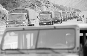 5月22日,西藏軍區(qū)日喀則軍分區(qū)運輸車隊幫助群眾轉(zhuǎn)移財產(chǎn)。新華社發(fā)
