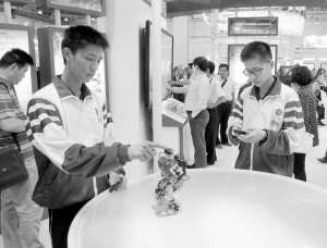 全國教育信息化應(yīng)用展覽在青島舉行      5月24日,兩名中學(xué)生在展覽上體驗操作機器人。由教育部、聯(lián)合國教科文組織、中國聯(lián)合國教科文組織全委會主辦,青島市人民政府承辦的全國教育信息化應(yīng)用展覽,于5月23日至25日在青島舉辦。新華社記者 張旭東 攝