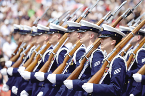 5月25日,在美國華盛頓憲法大道,儀仗隊士兵參加陣亡將士紀念日游行。