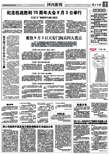 紀(jì)念抗戰(zhàn)勝利70周年大會9月3日舉行