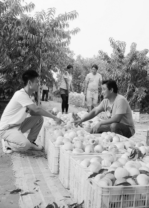 7月4日,扶溝縣江村鎮(zhèn)趙樓村村民正在摘桃出售。近年來(lái),該鎮(zhèn)積極引導(dǎo)農(nóng)民種植桃、梨、蘋果等優(yōu)質(zhì)小雜果,有效增加了當(dāng)?shù)厝罕姷氖杖搿?/P>