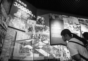① 7月12日,觀眾在中國人民抗日戰(zhàn)爭紀(jì)念館觀看“南京大屠殺”的相關(guān)史料。