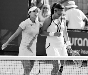 鄭潔和詹詠然今年2月開始搭檔打雙打。昨天面對(duì)兩位身高都超過1.80米的對(duì)手,她倆以穩(wěn)健多變的底線球和積極上網(wǎng)牢牢掌握著場(chǎng)上主動(dòng)權(quán),勝得十分輕松。