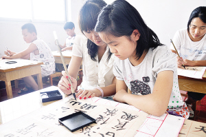 書畫相輔相成 為弘揚(yáng)“書畫同源”的中國傳統(tǒng)藝術(shù),本中心常年班采取書畫相輔相成的教學(xué)方法,毛筆與硬筆相結(jié)合、書法與繪畫教學(xué)交替進(jìn)行,以求事半功倍的教學(xué)效果。
